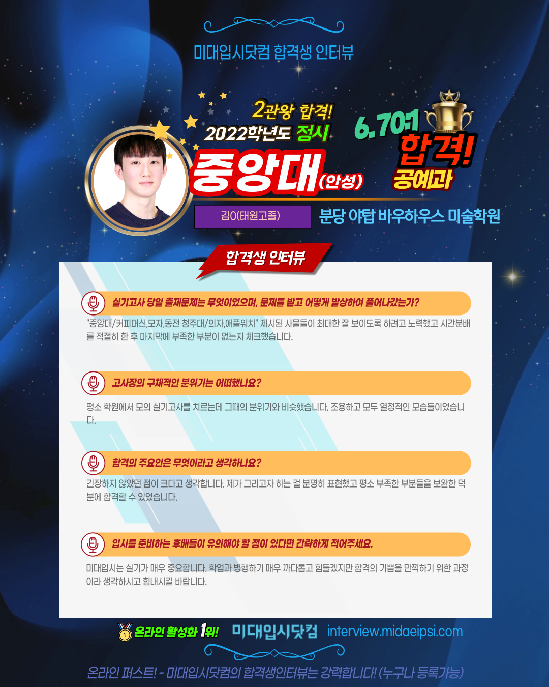 온라인 활성화 1위 !! [미대입시닷컴 합격생인터뷰]에서 등록가능합니다.