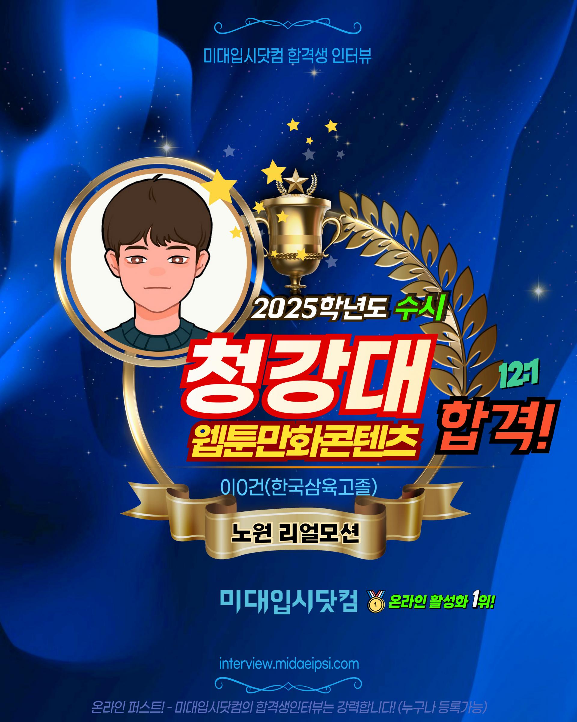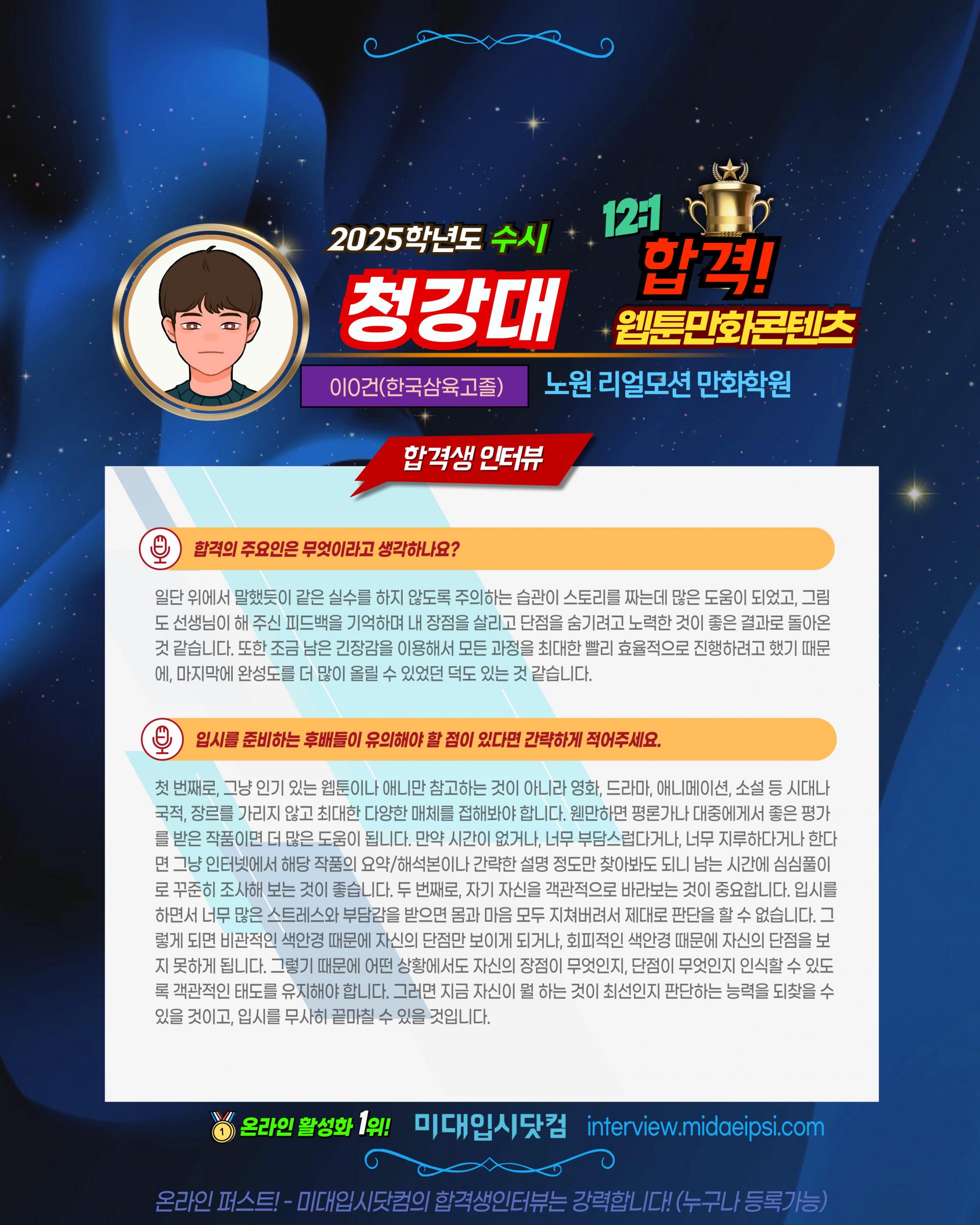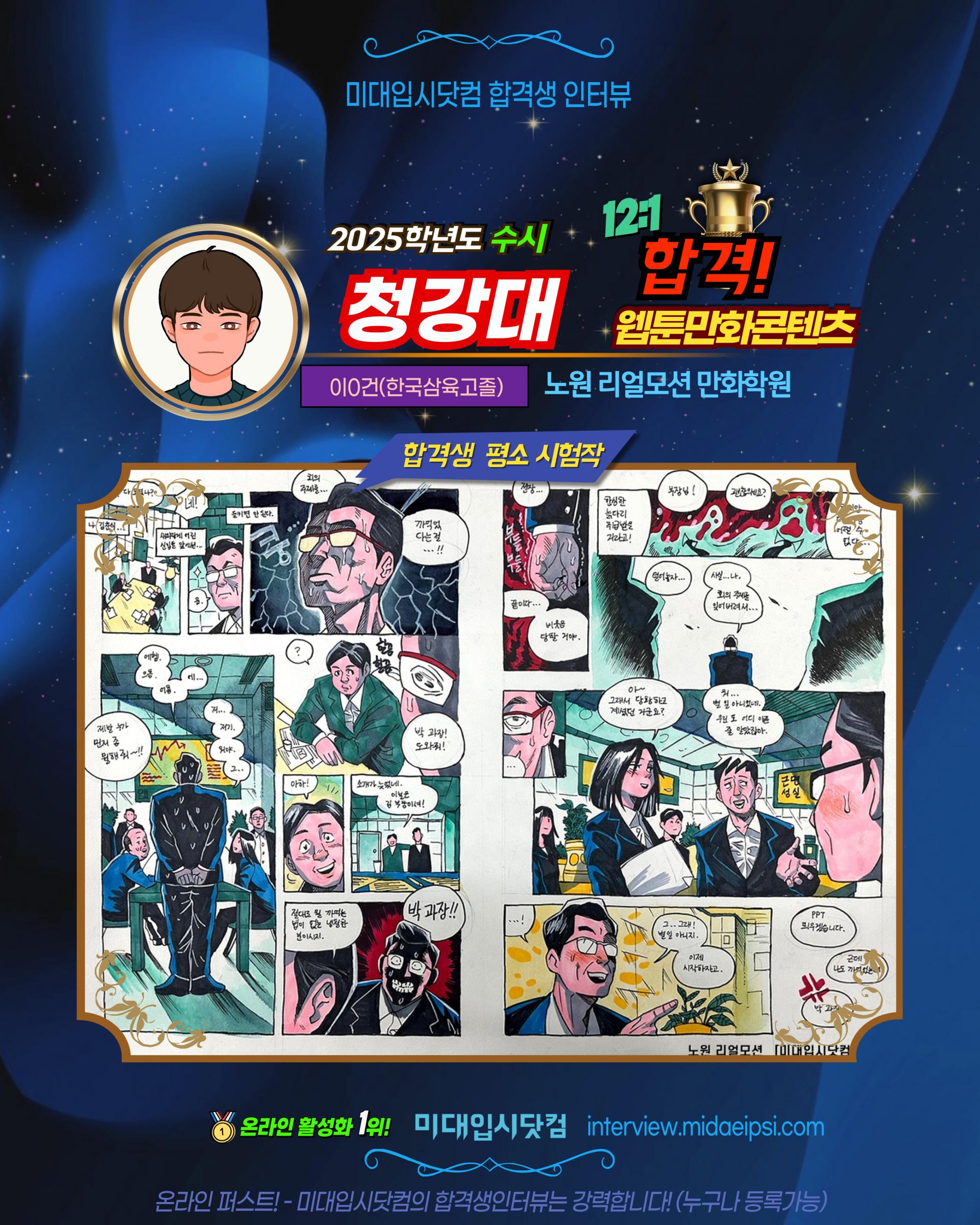 ✨2025(수시) 🏅청강대 웹툰만화콘텐츠전공 합격!! 🏆류0린(정의여고3)
