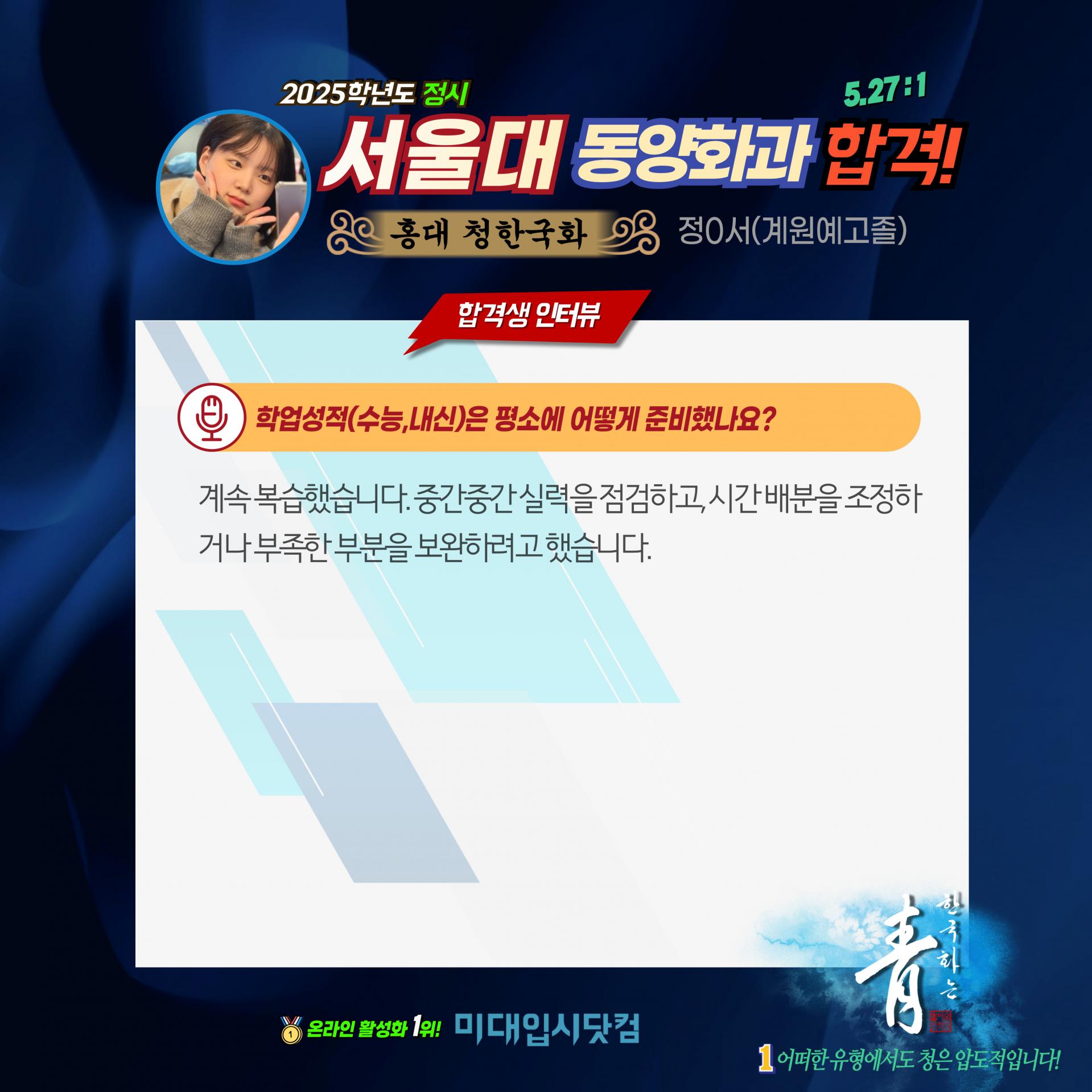 ✨2025학년도(정시) 서울대 동양학과 합격!! 🏆정0서(계원예고졸)