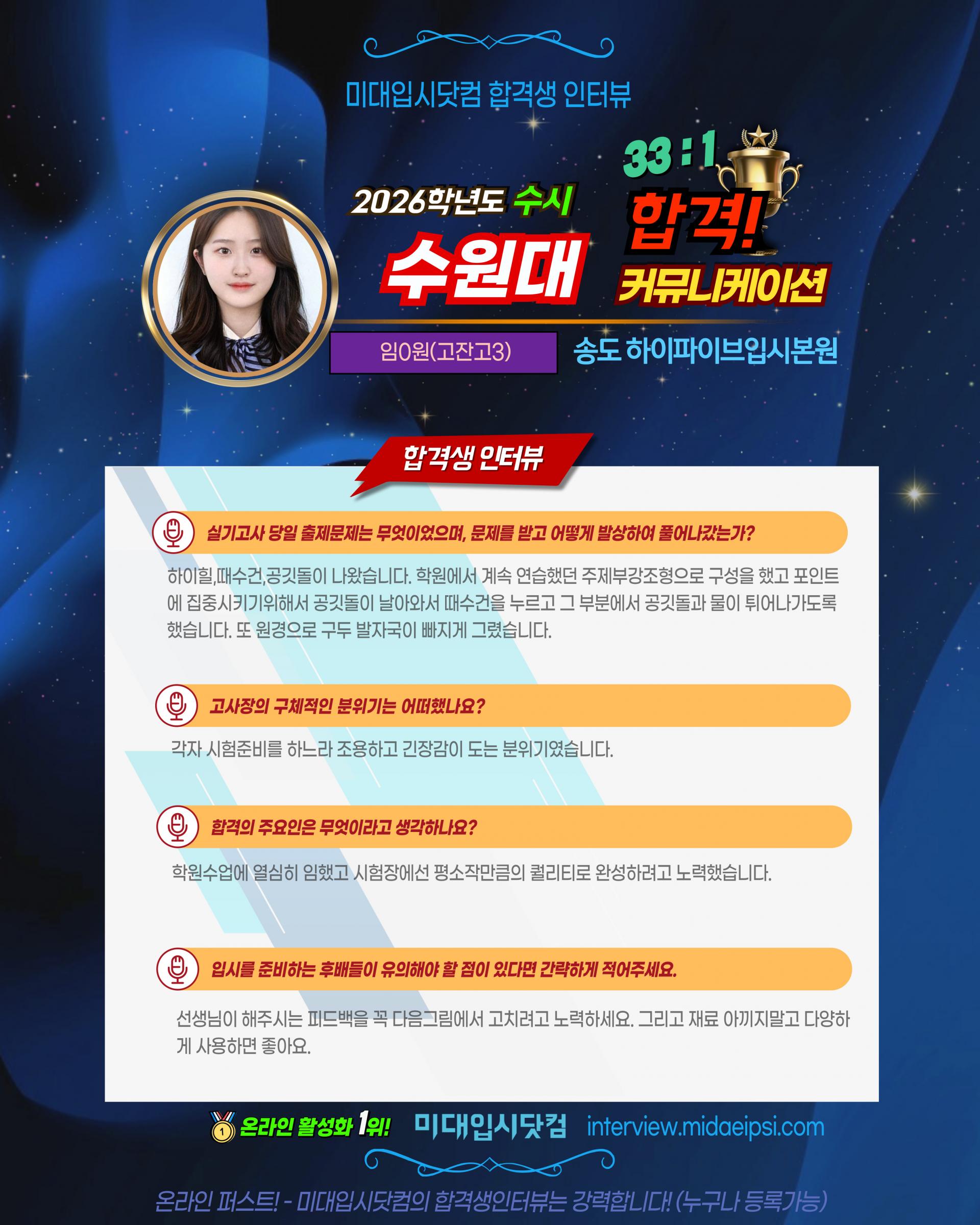 ✨2026(수시) 🏅수원대 커뮤니케이션 합격!🏆임0원(고잔고3)