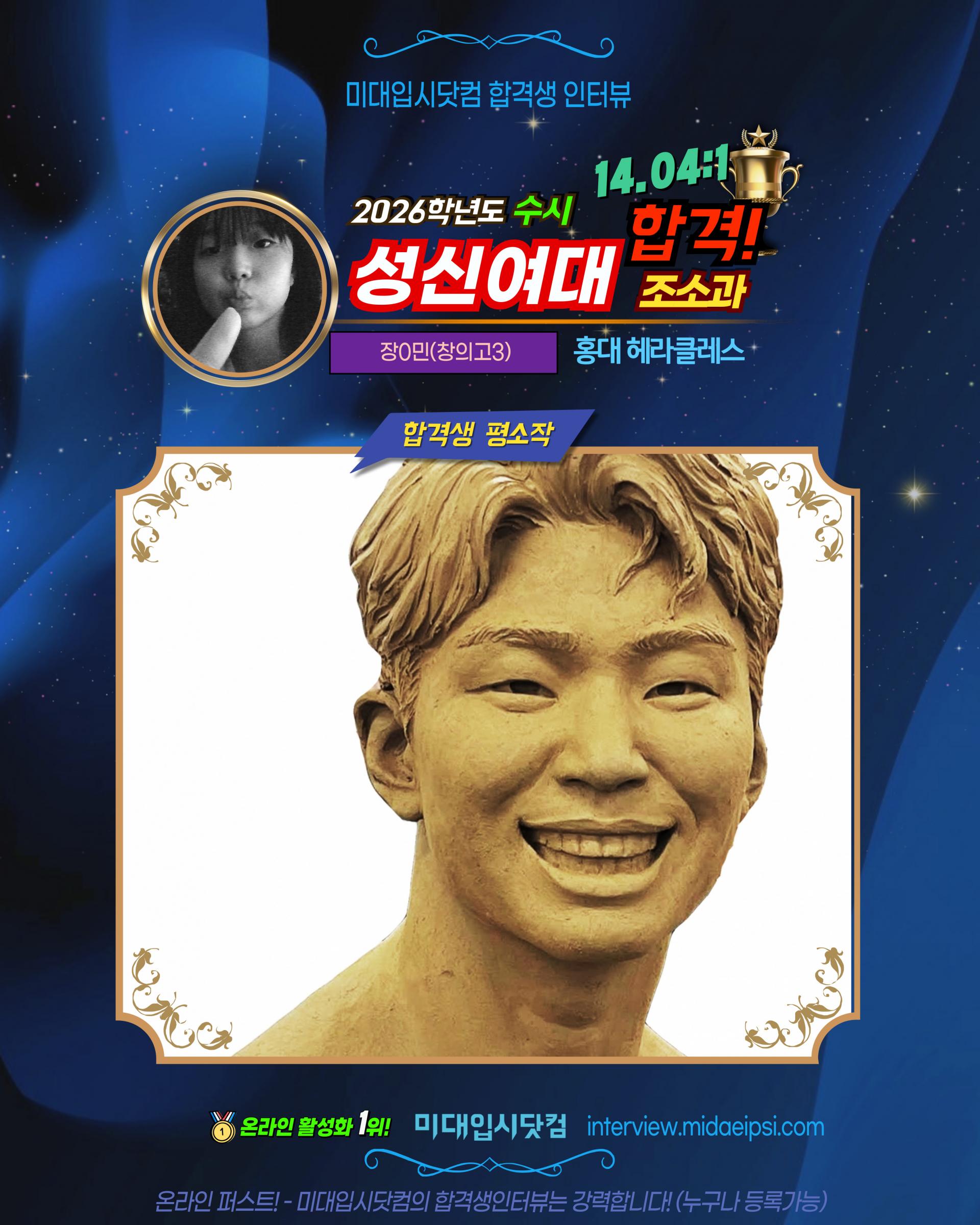 ✨2026(수시) 🏅성신여대 조소과 합격!!🏆장0민(창의고3)