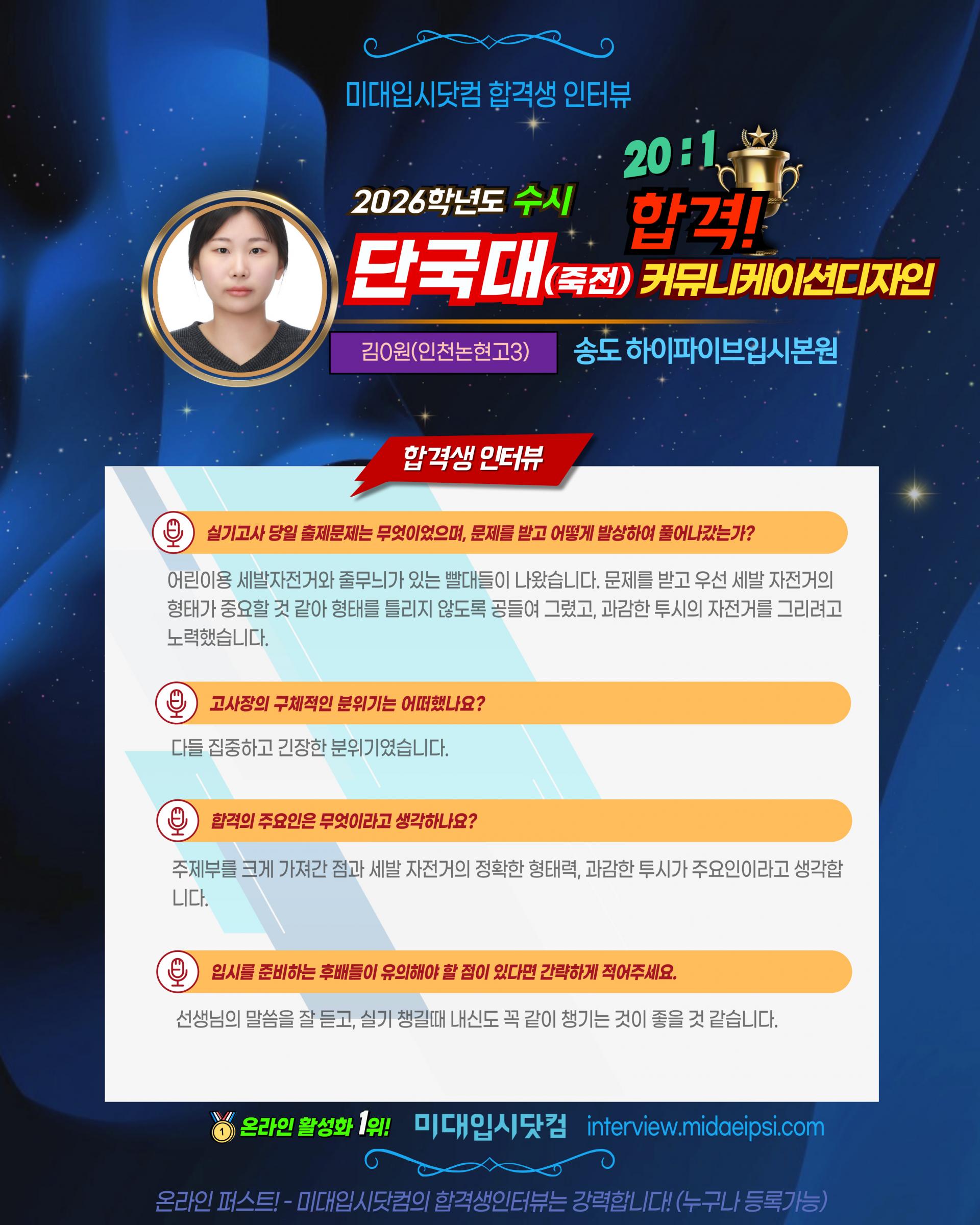 [미대입시닷컴 🎯 합격생 인터뷰] 송도 하이파이브입시본원 @songdo_hi5_design
