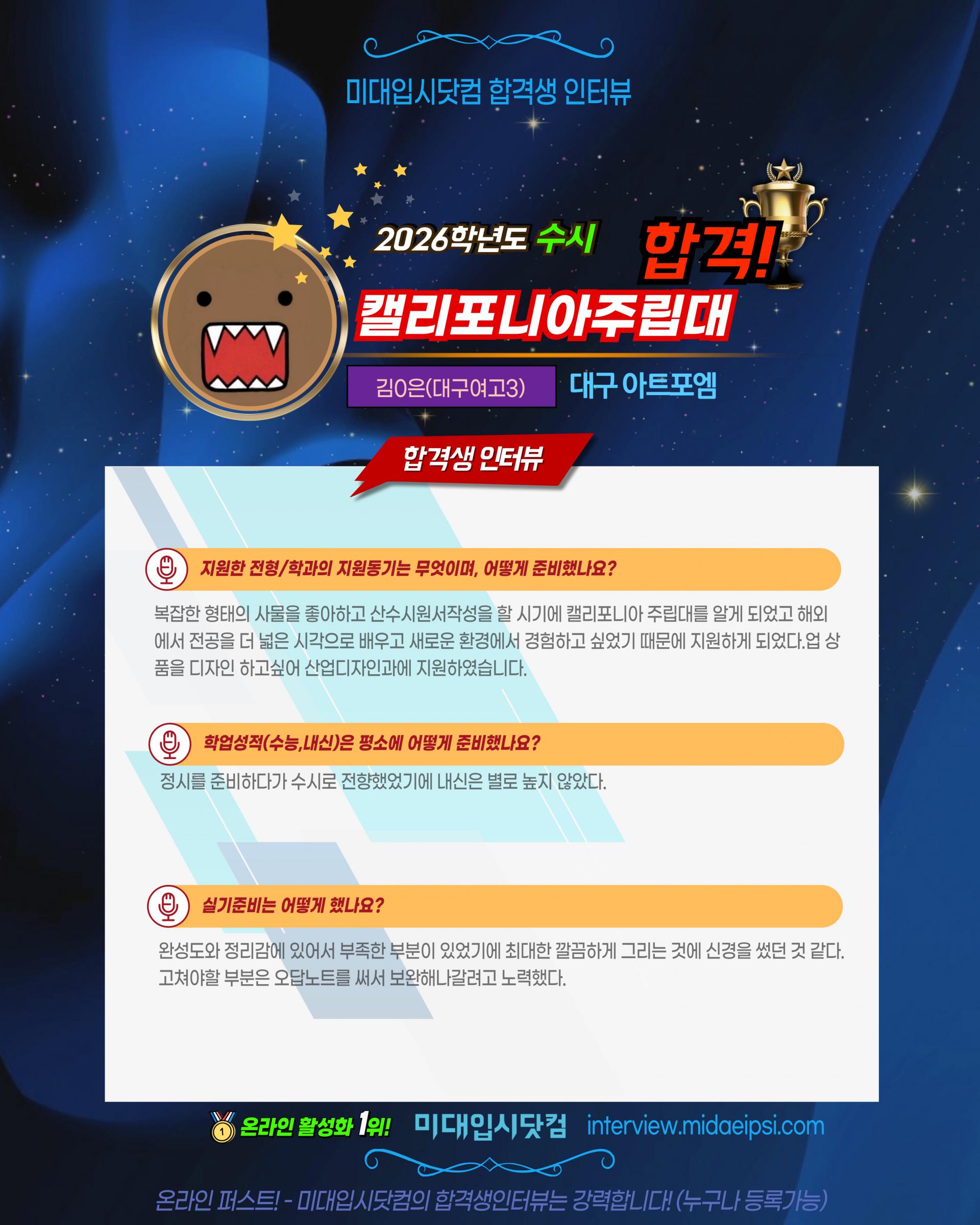 ✨2026(수시) 🏅캘리포니아주립대 합격!!🏆김0은 (대구여고3)