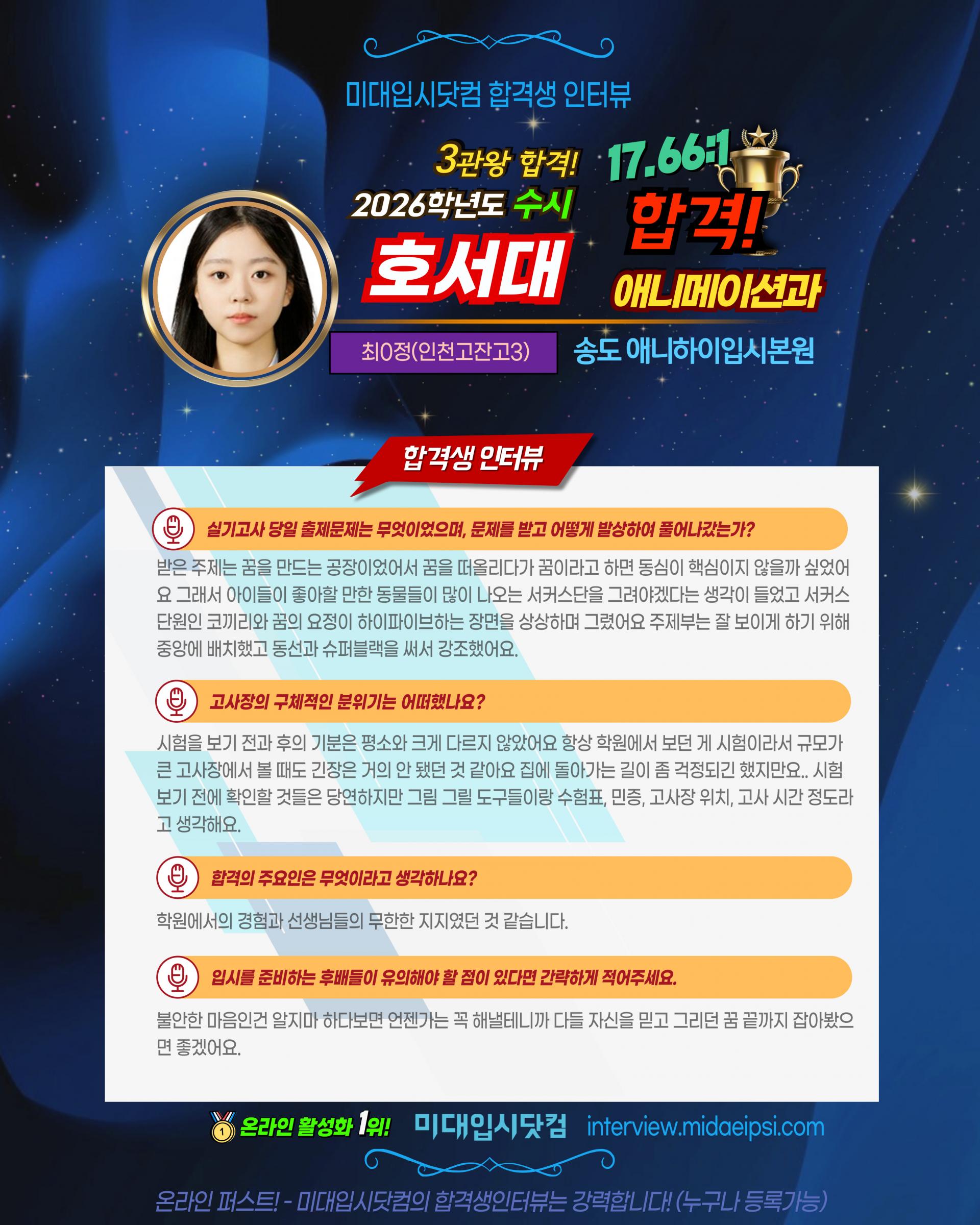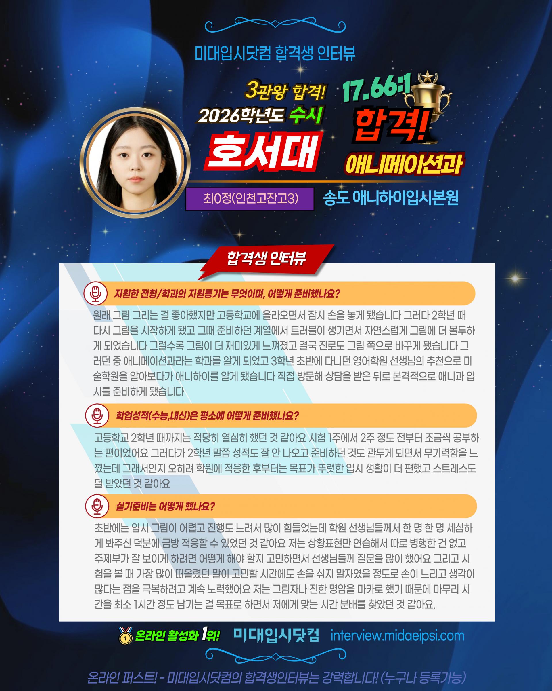 [미대입시닷컴 🎯 합격생 인터뷰] 송도 애니하이입시본원 @songdo_hi5_design