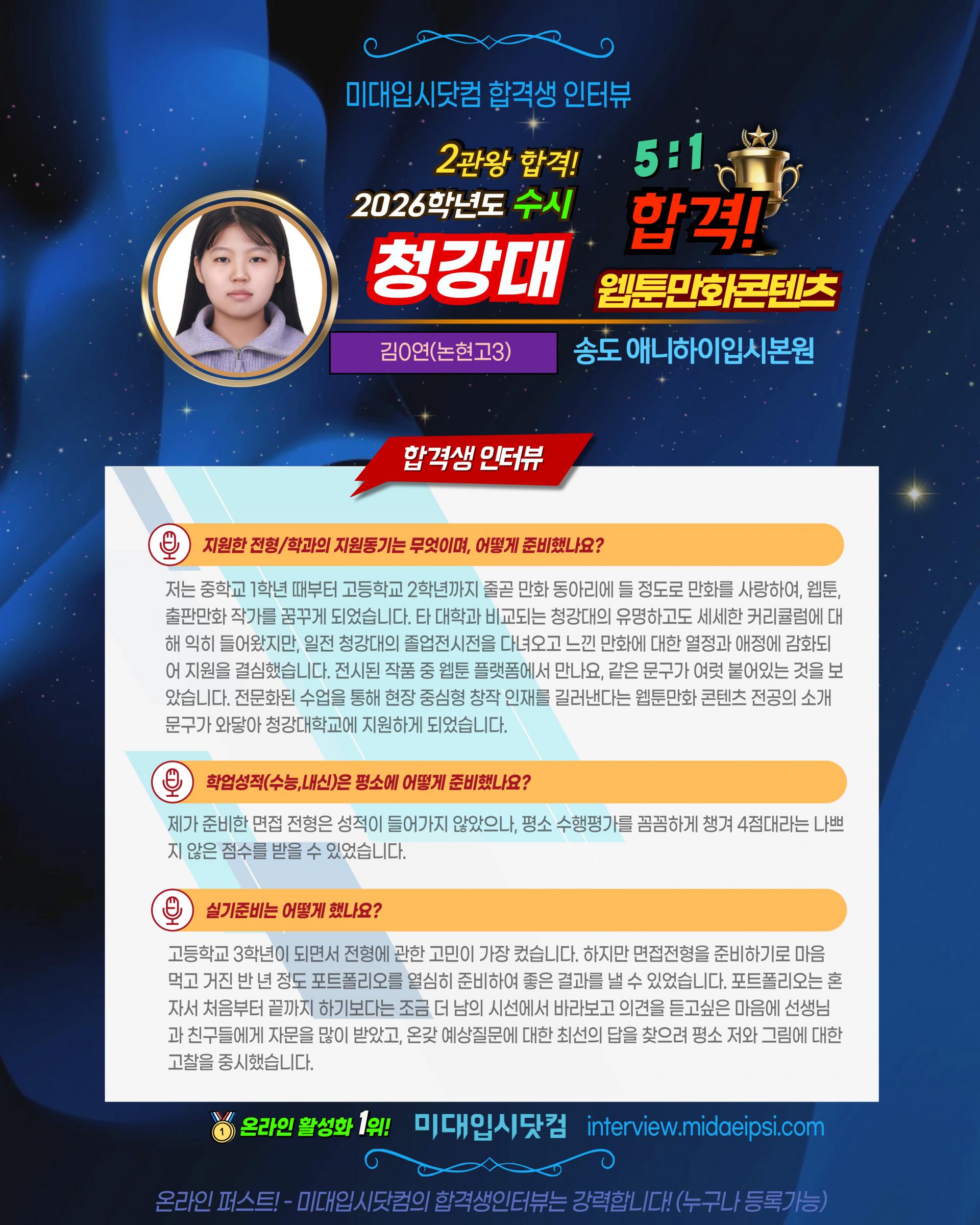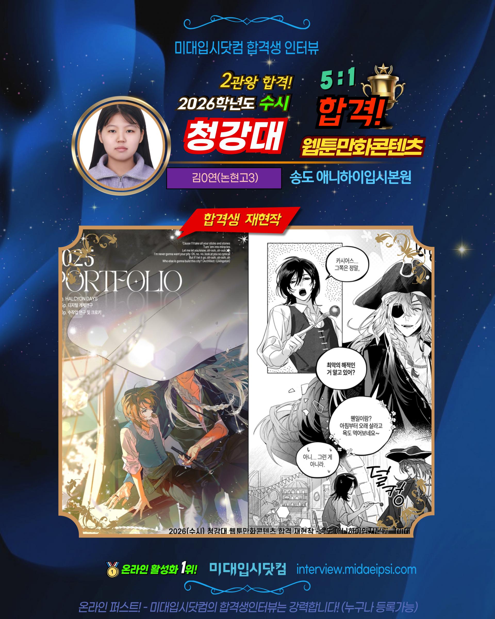 ✨2026(수시) 🏅청강대 웹툰만화콘텐츠 합격!! 연성대 합격!! - 수시 2관왕!!🏆김0연(논현고3)