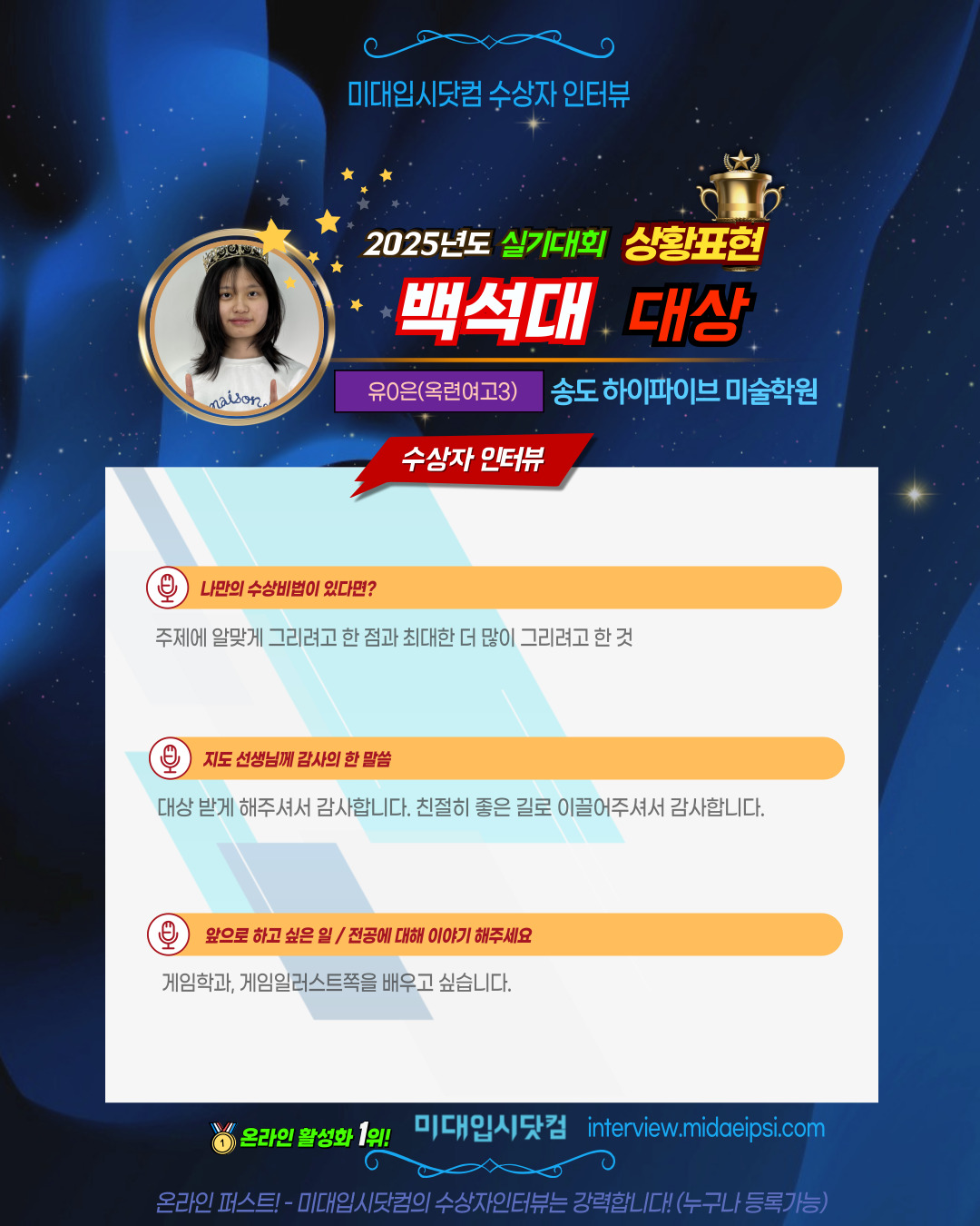 Q. 나만의 수상비법이 있다면? 미대입시닷컴 midaeipsi.com 송도 하이파이브입시본원