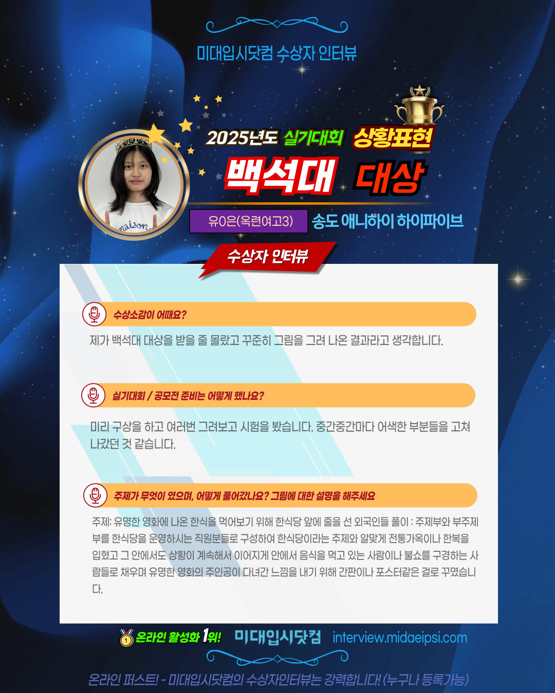 🔥 2025년도 🏅백석대 실기대회 <상황표현> 대상 🏆 유0은(옥련여고3)