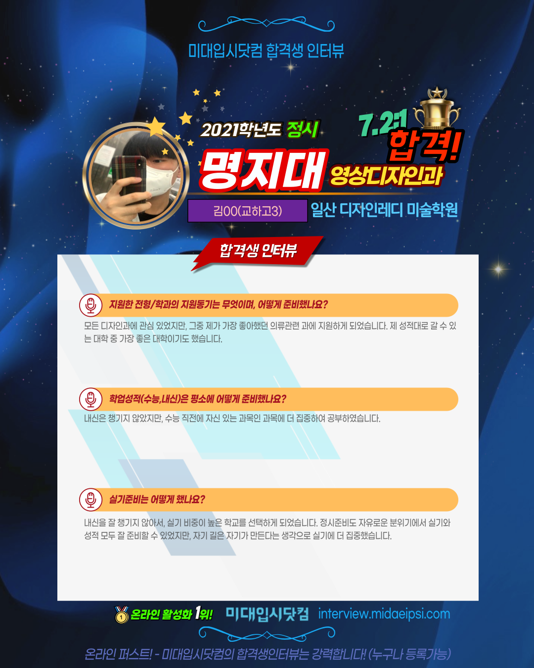 온라인 활성화 1위 !! [미대입시닷컴 합격생인터뷰]에서 등록가능합니다.