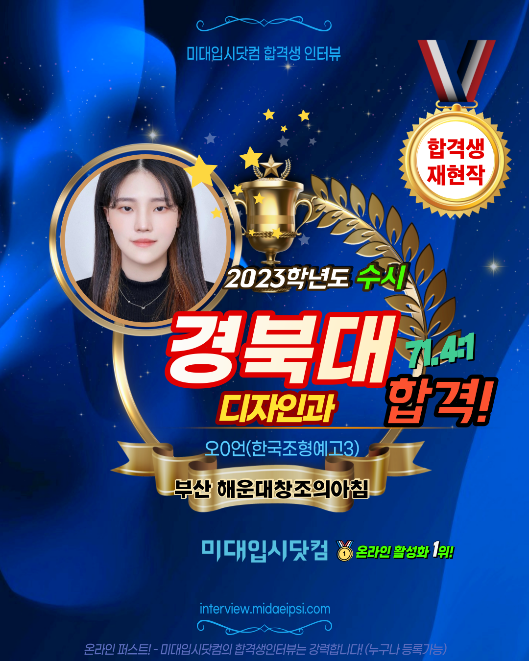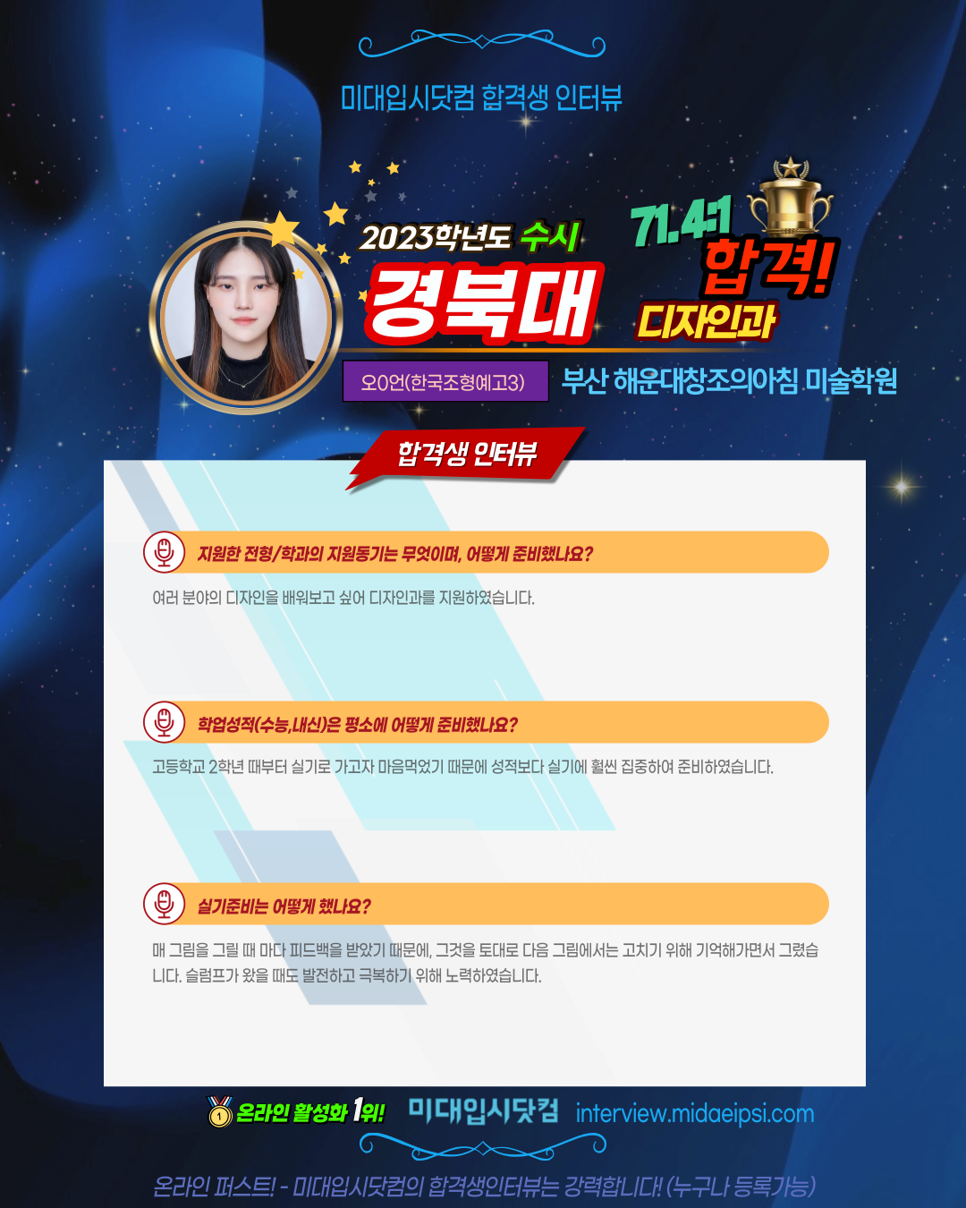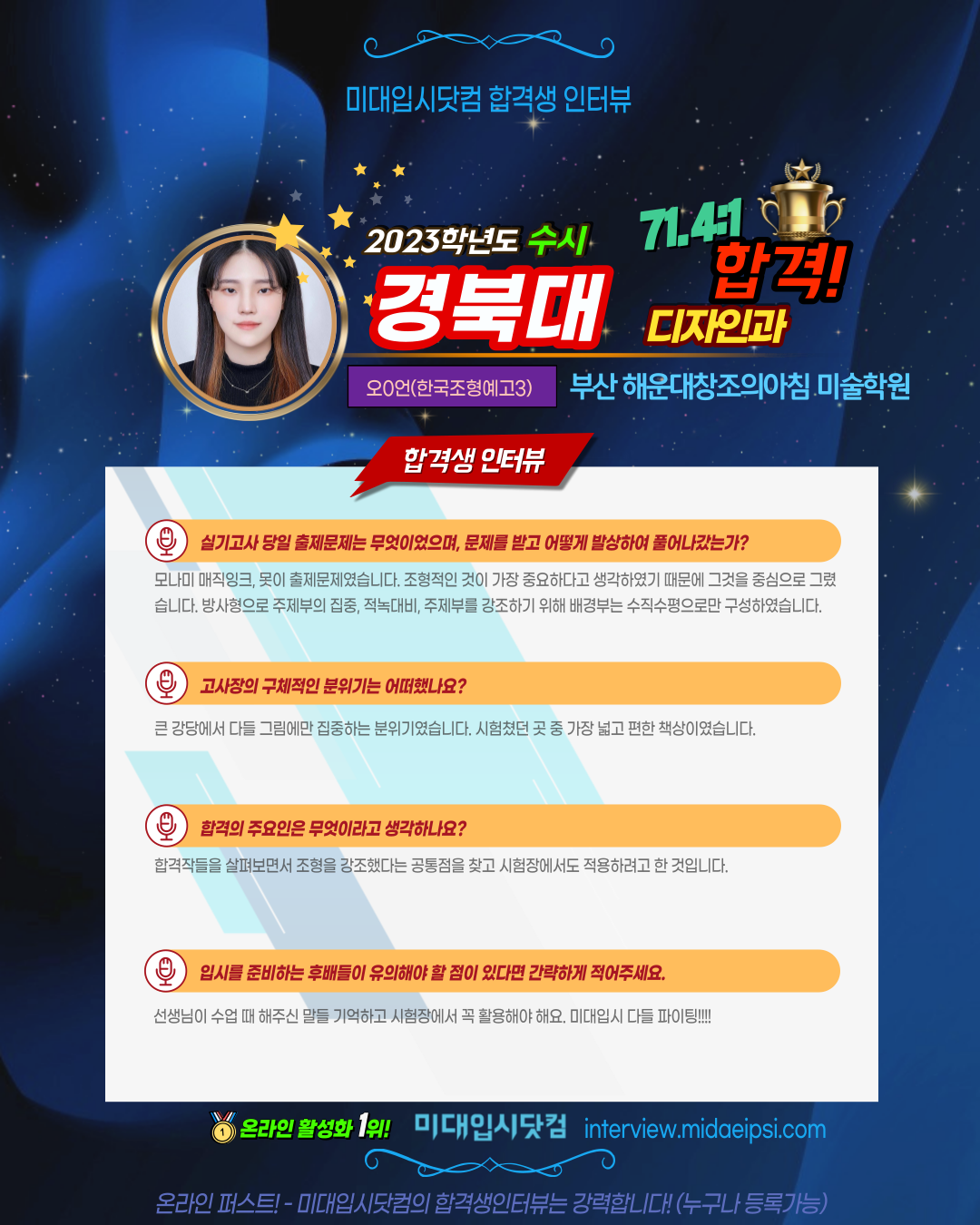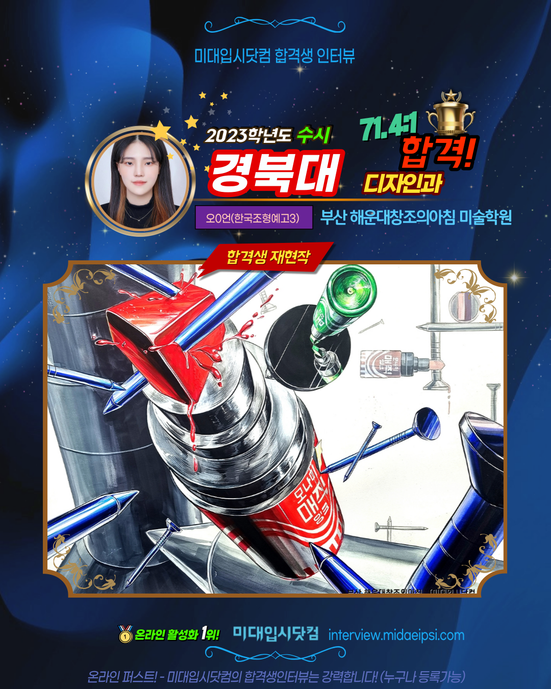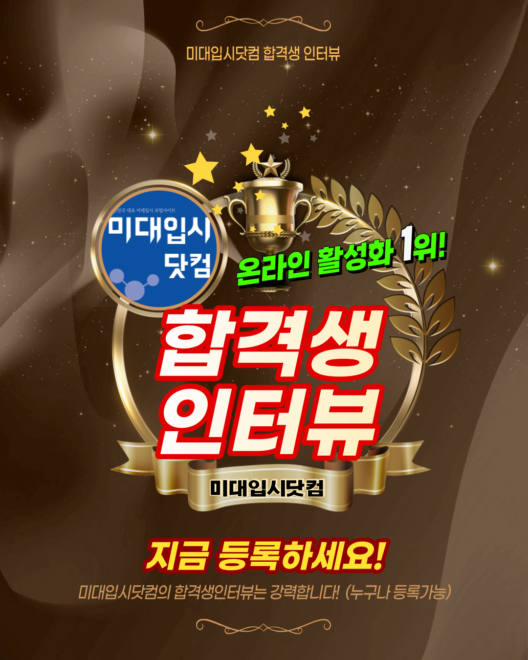온라인 활성화 1위 !! [미대입시닷컴 합격생인터뷰]에서 등록가능합니다.