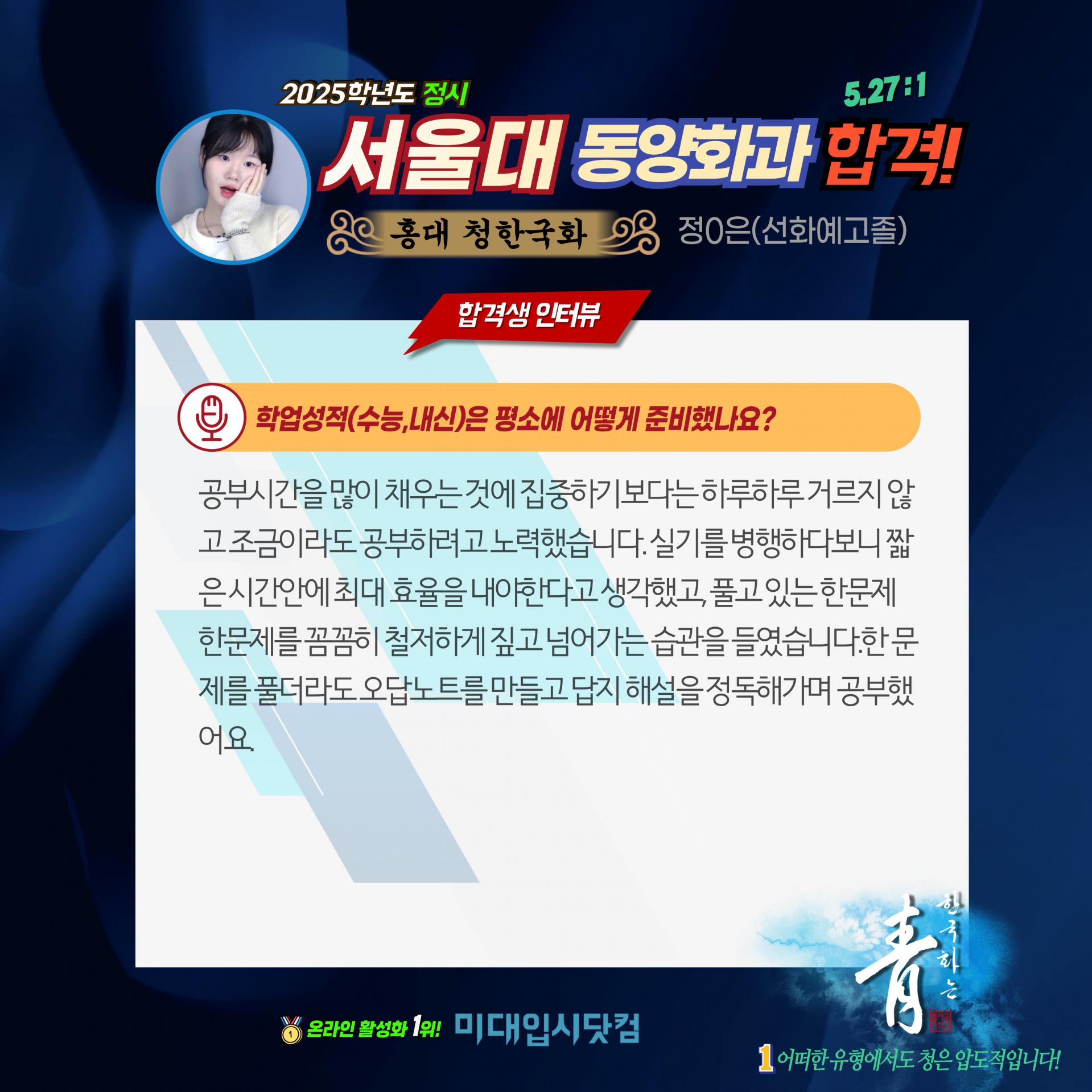 ✨2025학년도(정시) 서울대 동양학과 합격!! 🏆정0은(선화예고졸)
